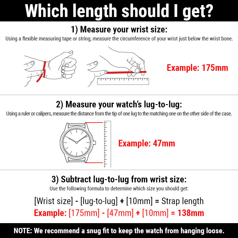 - Size: 20mm, 22mm (18mm & 24mm available only in Black & Grey)