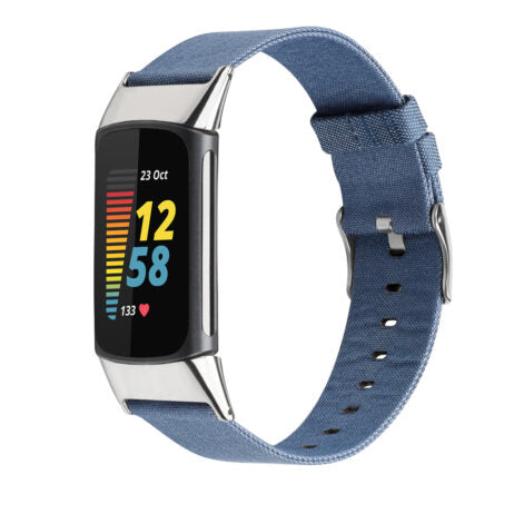StrapsCo canvas band for Fitbit Charge 6. These bands come in a variety of classic colors, making it a perfect band for daily wear. These bands are soft to the touch and feature polished silver clasps and connectors.
