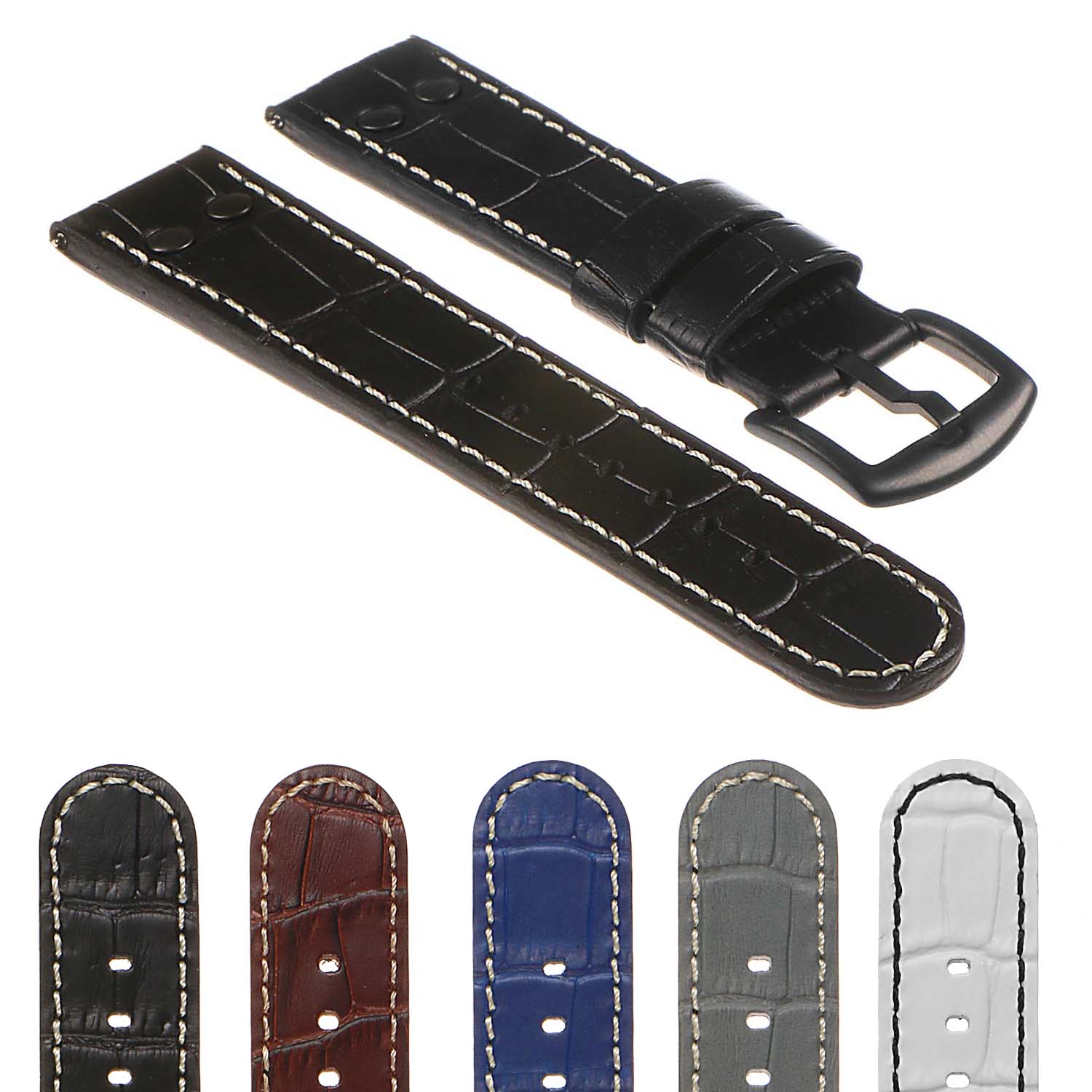 DASSARI Croc Embossed Leather Pilot Strap w/ Rivets Samsung Galaxy Watch 3