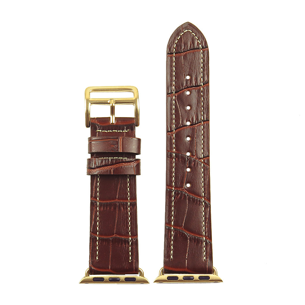 DASSARI Croc Embossed Leather Strap w/ Yellow Gold Buckle for Apple Watch