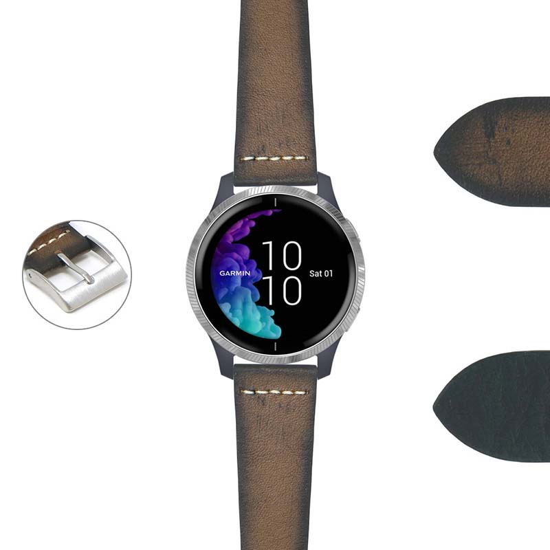 DASSARI Kingwood III Premium Vintage Leather Strap for Garmin Forerunner 745