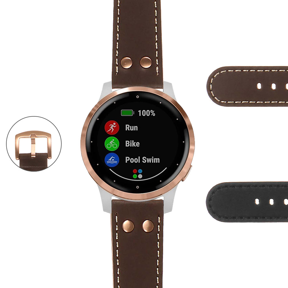 DASSARI Leather Pilot Strap with Black Rivets for Garmin Vivoactive 4S & Vivomove 3S