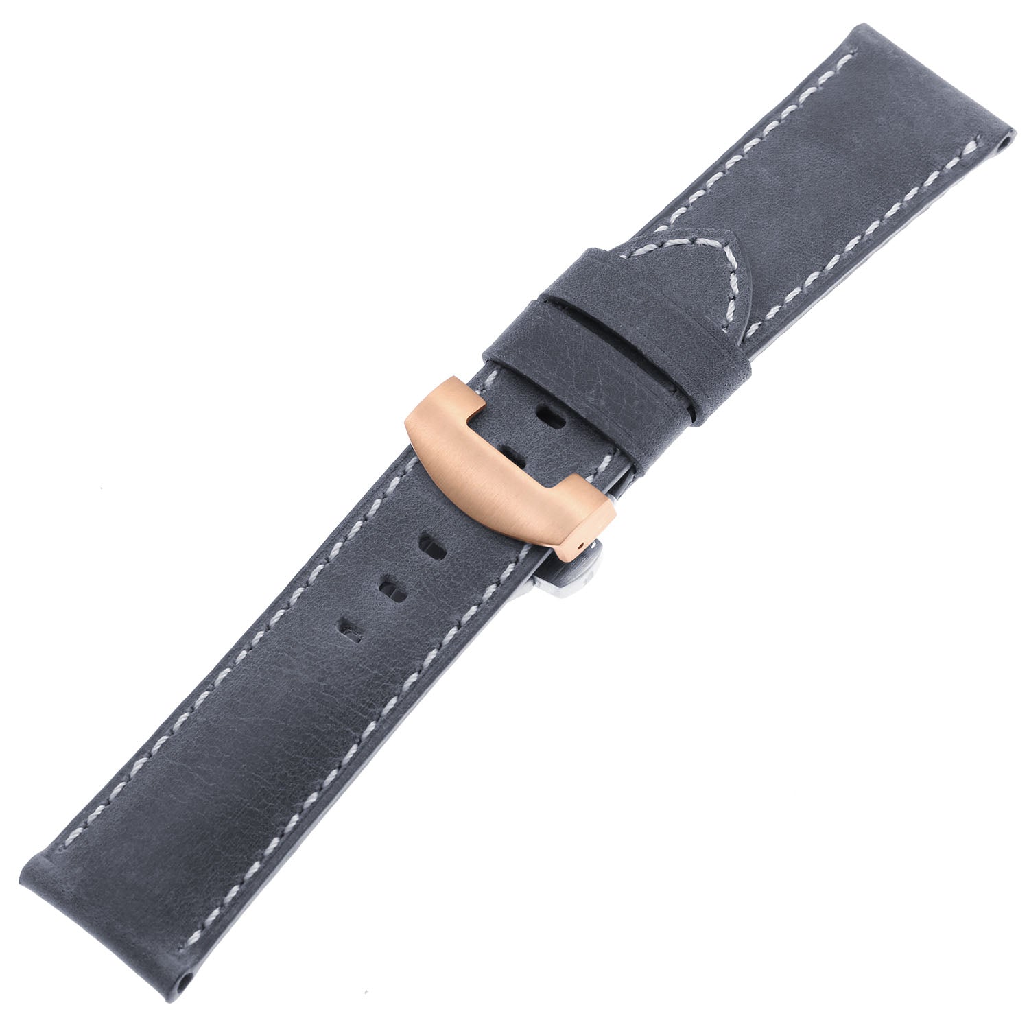 DASSARI Vintage Leather Strap w/ Deployant Clasp (Standard, Long) for Samsung Galaxy Watch 3 (45mm) Oyster Blue
