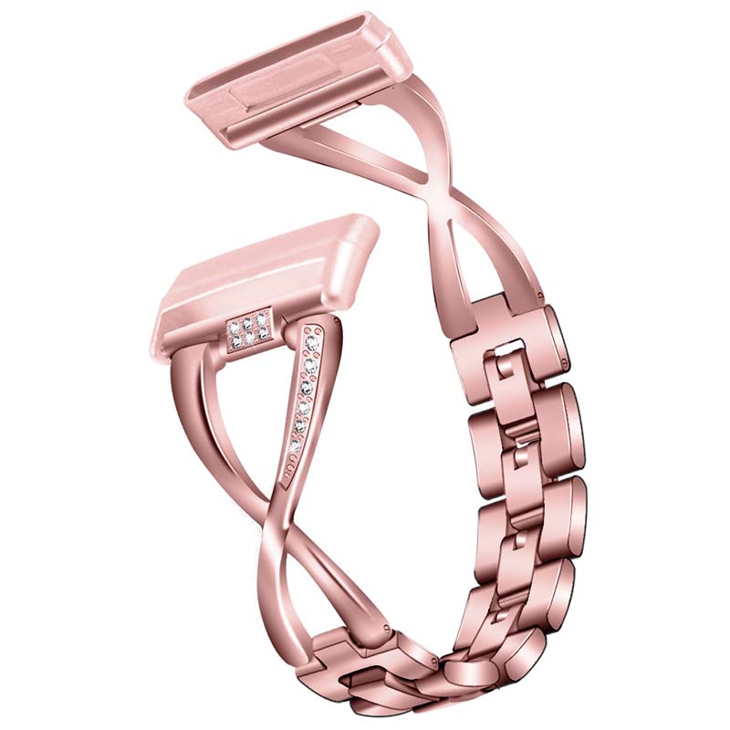 StrapsCo alloy metal jewelry bracelet designed for the Fitbit Sense. Imitation diamonds add an affordable touch of elegance to your device. Features a unique clasp system where each link can be removed to shorten the bracelet, as desired.