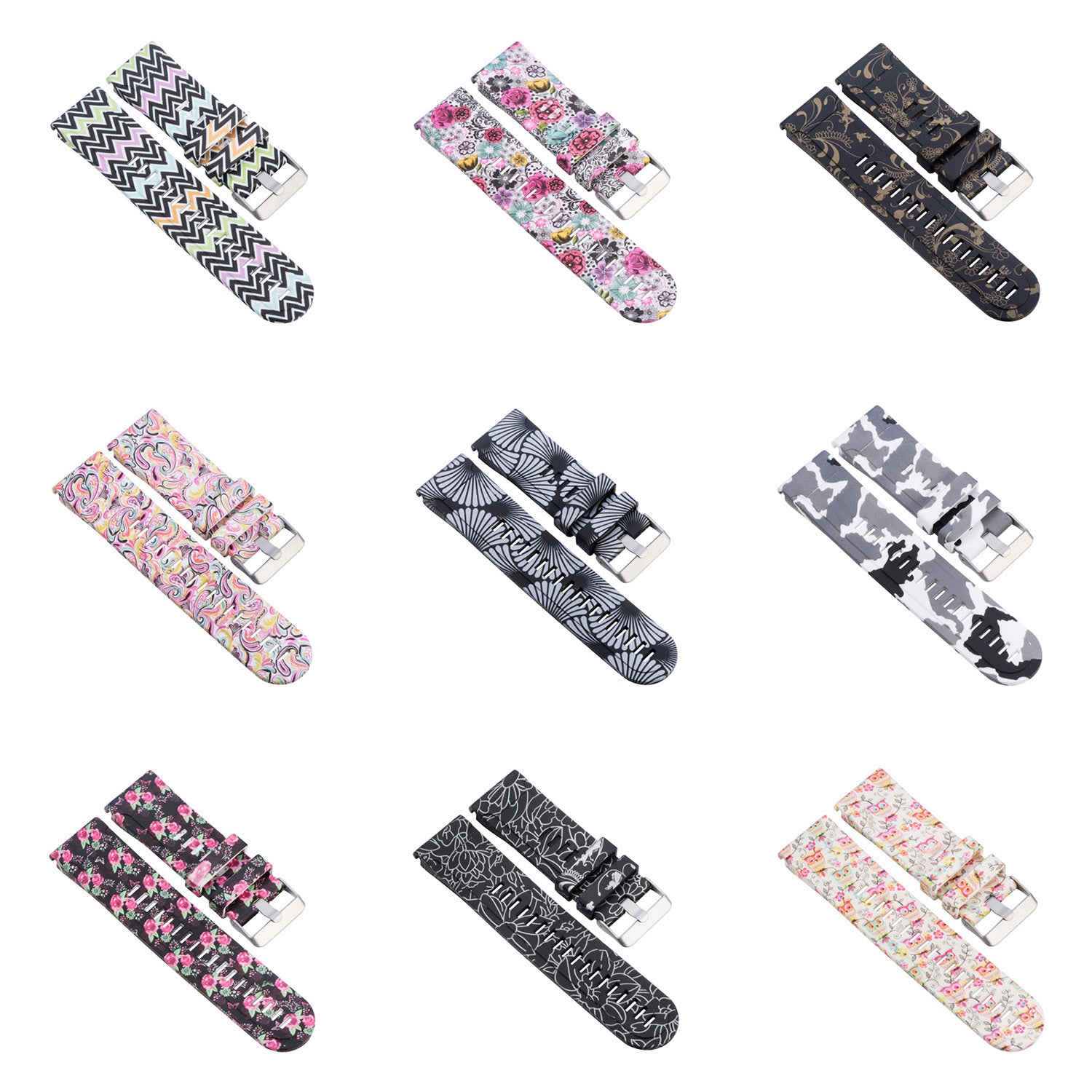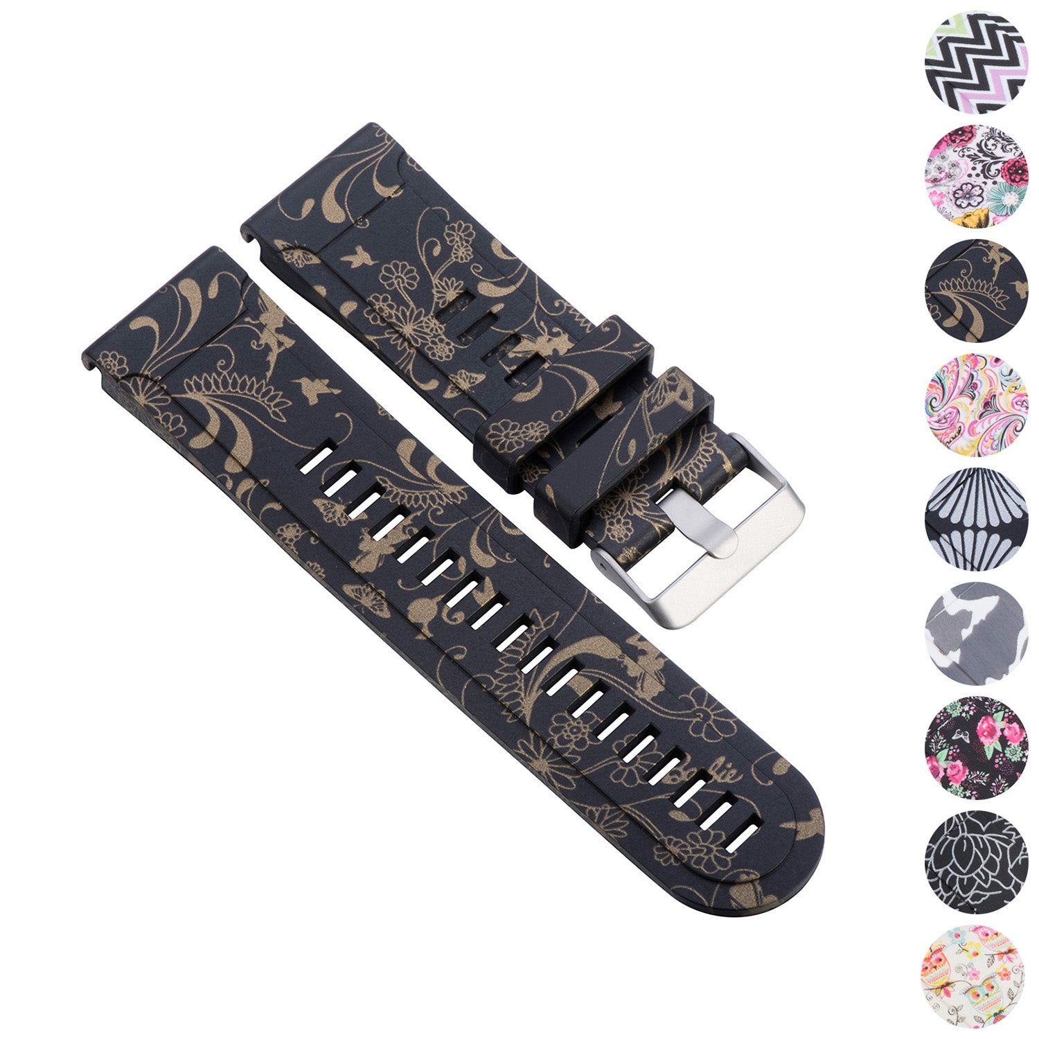 StrapsCo silicone rubber replacement strap designed for Garmin Instinct. Similar to QuickFit 22, this band snaps on and off with ease. This flexible rubber strap has a soft, comfortable surface that won’t be ruined by moisture even when used by the most active Garmin users. Choose from a collection of unique designs. Features a matte silver buckle.