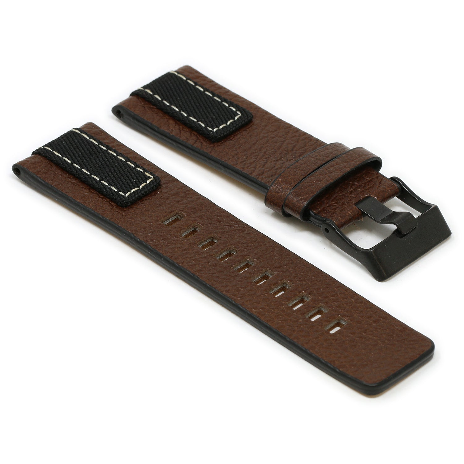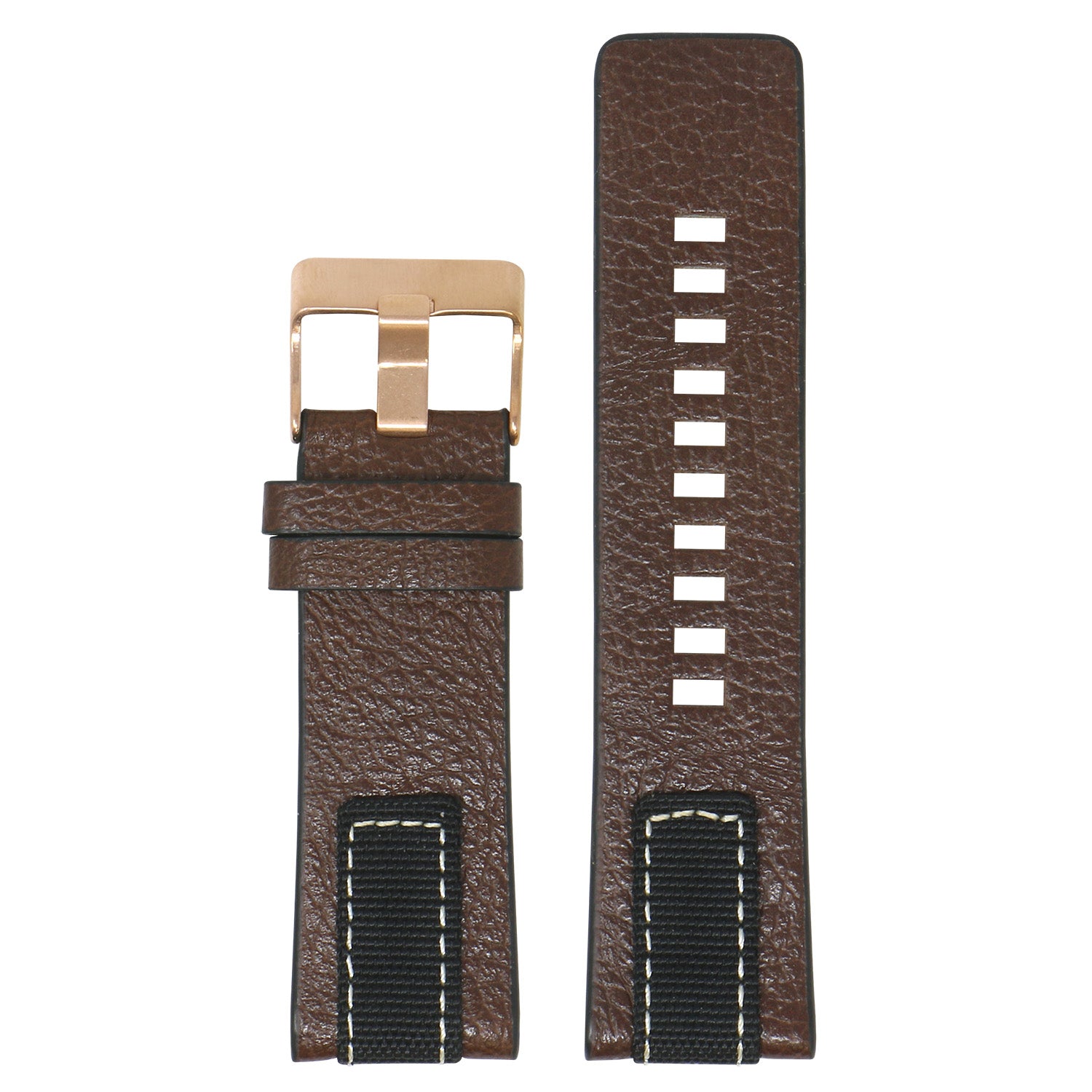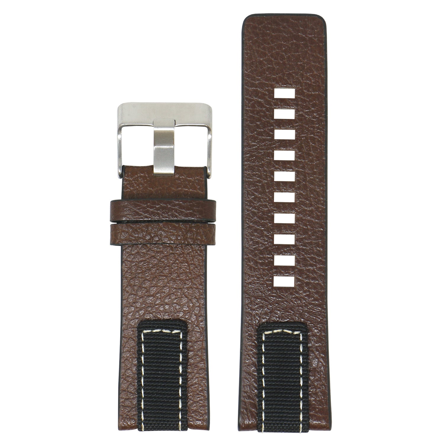 StrapsCo pebbled leather & nylon watch band. Finished with silver, black, yellow gold or rose gold buckle. Fits Diesel watches as well as other watches with standard lug widths.
