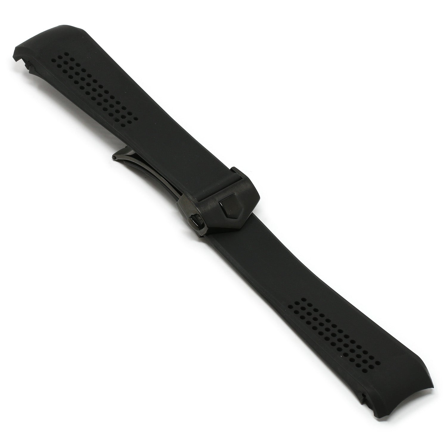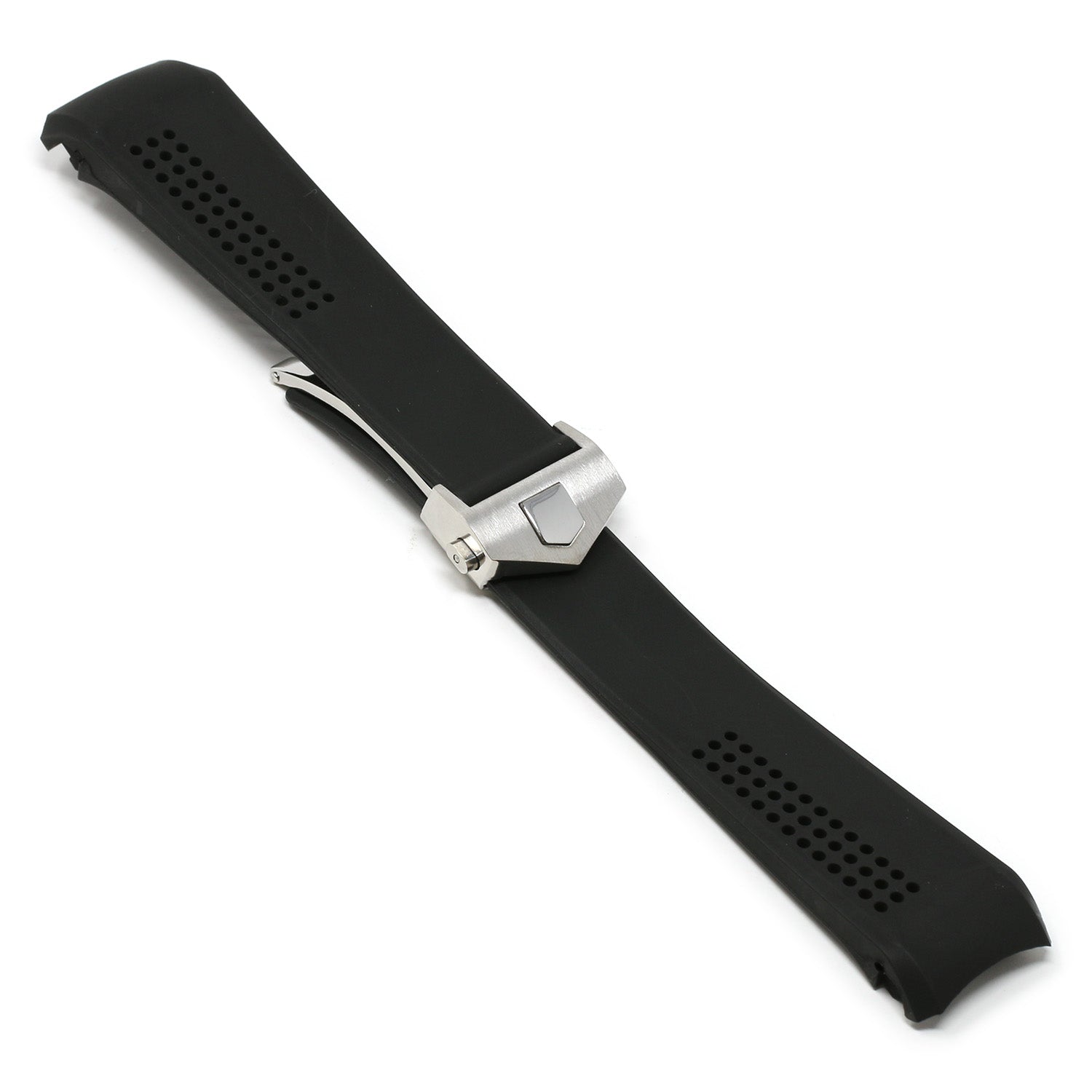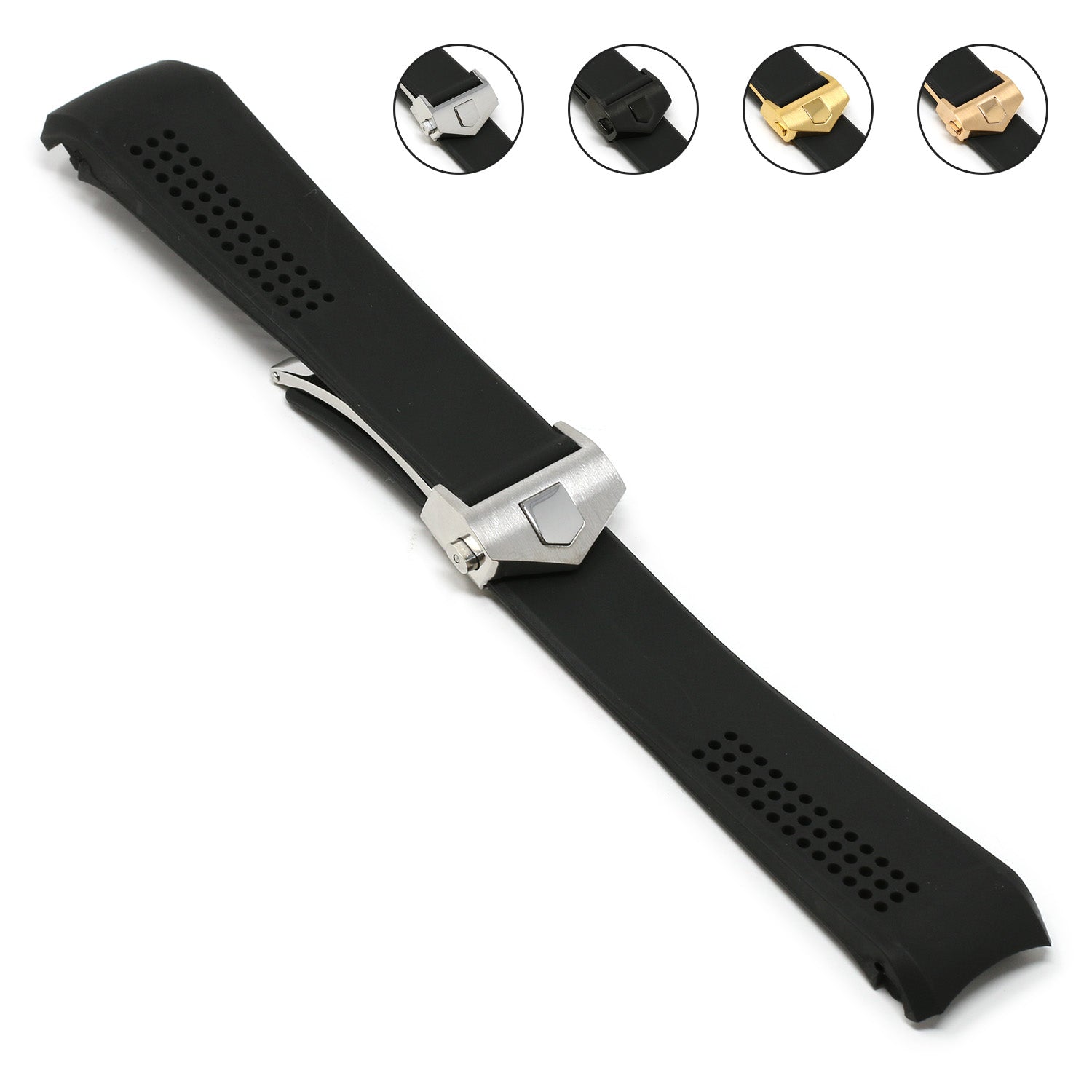 StrapsCo replacement watch band for TAG Heuer Carrera. This smooth silicone rubber strap features an elegant design and can be combined with one of five clasp colors offering a large variety of choices.