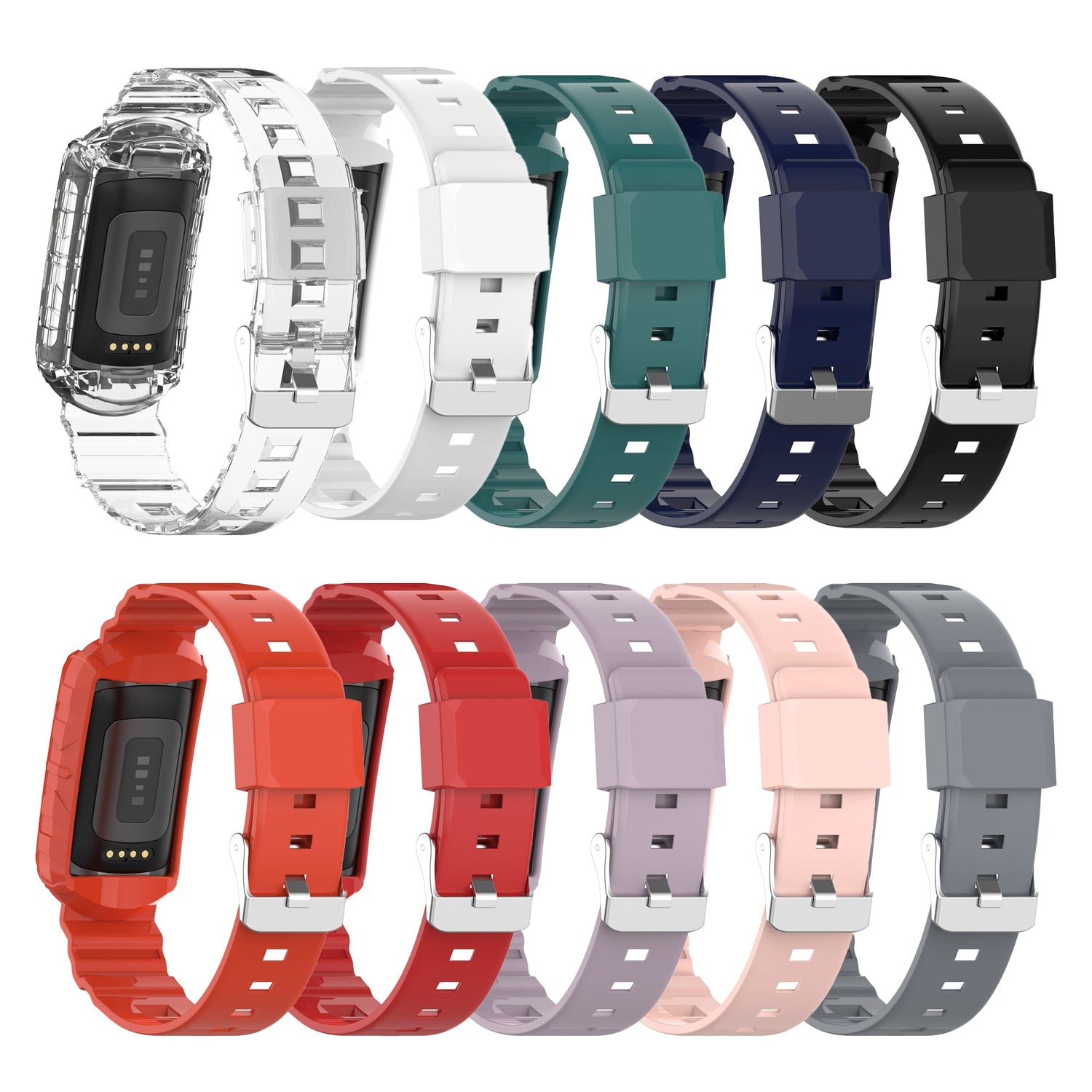 StrapsCo silicone rubber replacement watch bands with built-in guard designed for Fitbit Charge 6. Features a textured case and color coordinated keeper. This flexible strap won’t be ruined by moisture even when used by the most active Fitbit users.
