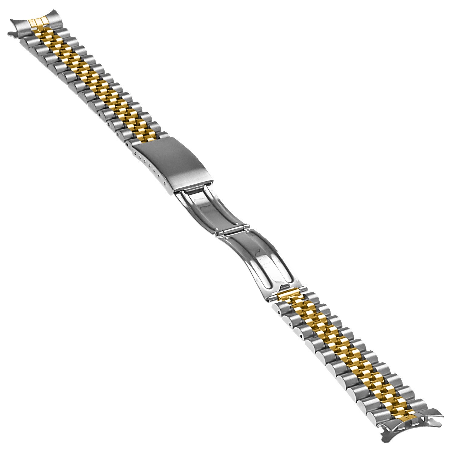 This beautiful stainless steel watch bracelet with a hidden clasp will suit Rolex and other watches. This band has “curved ends” and is compatible with most but not all watches.