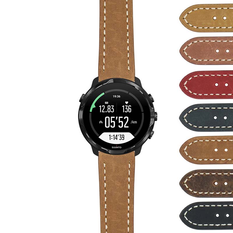 Premium quality leather watch band for Samsung Galaxy Watch 4 by StrapsCo. This band is made using soft vintage finished top grain pull up leather and features off-white contour stitching. The band is completed with a high-quality brushed steel buckle. 20mm watch bands for Galaxy Watch 4 (44mm), Galaxy Watch 4 (40mm), Galaxy Watch 4 Classic (46mm), Galaxy Watch 4 Classic (42mm).