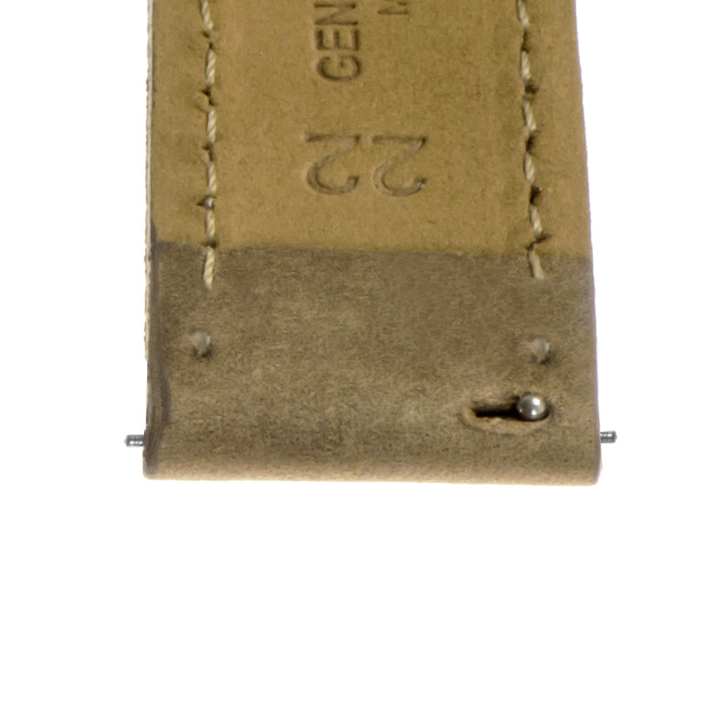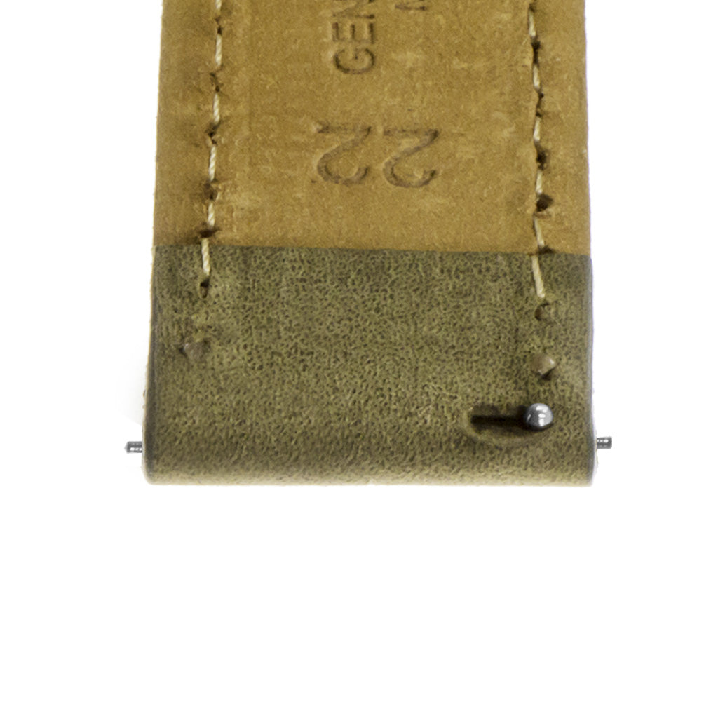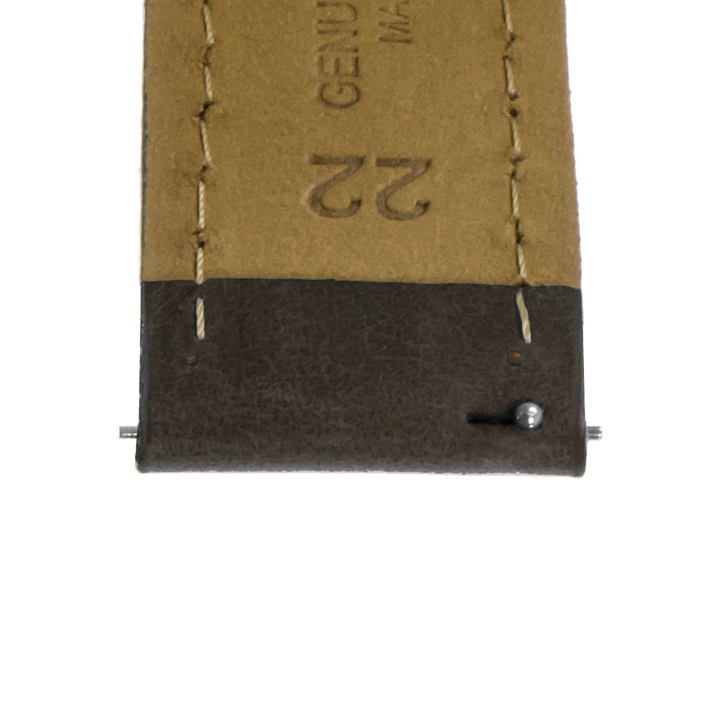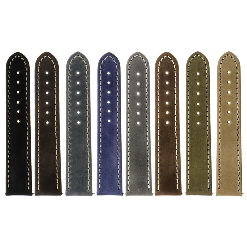 Beautiful high quality leather watch band by StrapsCo. This band is made in Spain, using vintage finished top grain pull up leather and features off-white contour stitching. Band style is vintage yet sophisticated, with an unpadded, tapered strap. The band is completed with a stainless steel tang buckle.